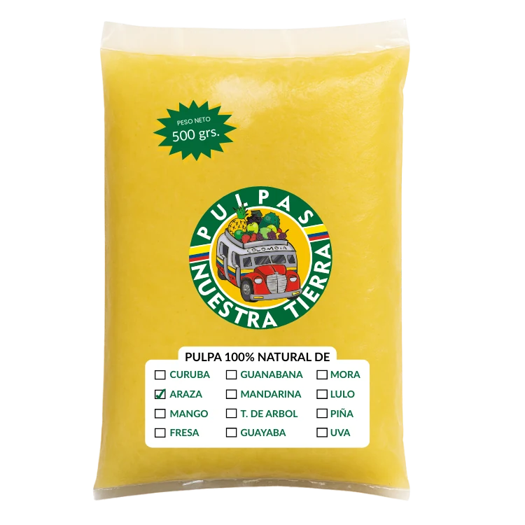 • Pulpa de Arazá elaborada con fruta 100 % natural, sin químicos, colorantes, conservantes ni endulcorantes añadidos.