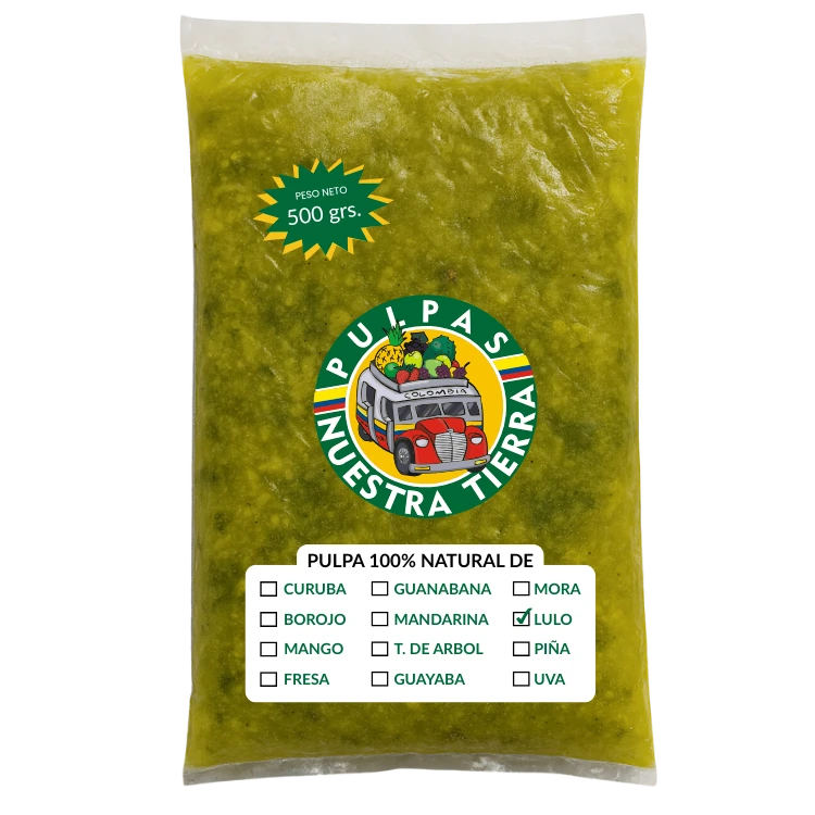 • Pulpa de Lulo elaborada con fruta 100 % natural, sin químicos, sin conservantes ni endulcorantes añadidos.